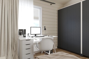 Каркас внутренних перегородок – доска "soft angle" 45х95 мм экспортного качества камерной сушки строганая. Отделка внутренних стен - Особопрочная гипсостружечная плита 12 мм. Доска изготавливается полностью на нашем производстве. От сушилок до строжки и сборочной линии. Стены поставляются в собранном виде с интегрированными гофрами для скрытой электропроводки.
