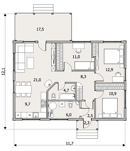 | Опция: Терраса 17,5 м2 |