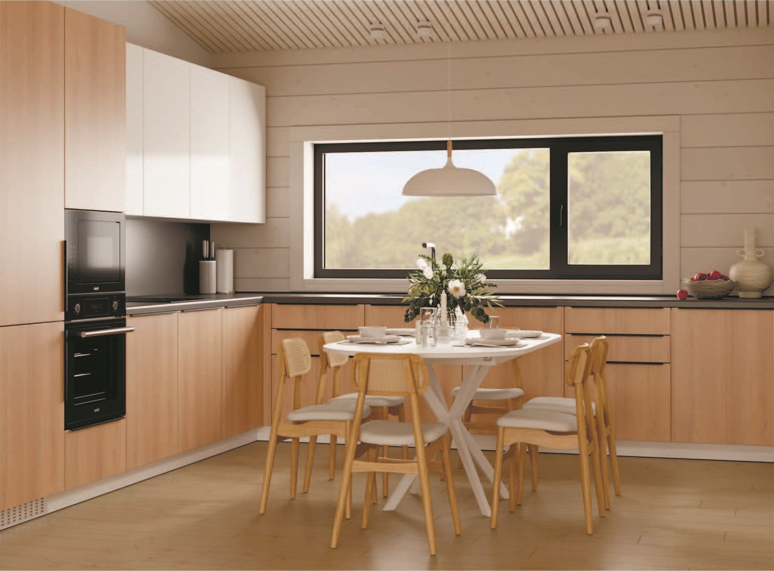 В наши дома мы устанавливаем современные окна из качественного ПВХ-профиля REHAU DELIGH 70 мм или его аналогов, снабжённые двухкамерными стеклопакетами с энергосберегающими стёклами. Нестандартный цвет, оформление рам, установка специальной фурнитуры, вентиляционных клапанов, согласовываются дополнительно.