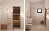 Каркас внутренних перегородок – доска "soft angle" 45х95 мм экспортного качества камерной сушки строганая. Отделка внутренних стен - Гипсовая плита повышенной прочности Gyproc Аква Стронг 15мм. Доска изготавливается полностью на нашем производстве. От сушилок до строжки и сборочной линии. Стены поставляются в собранном виде с интегрированными гофрами для скрытой электропроводки.