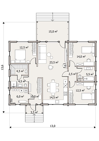 Терраса – это лёгкая балочная конструкция с ограждением и дощатым настилом. Поскольку терраса эксплуатируется на улице, для её сооружения мы используем красивую, натуральную, экологически чистую импрегнированную доску. Материал отличается долговечностью, прочностью, износостойкостью, устойчив к повышенной влажности, перепадам температур, ультрафиолетовому излучению.