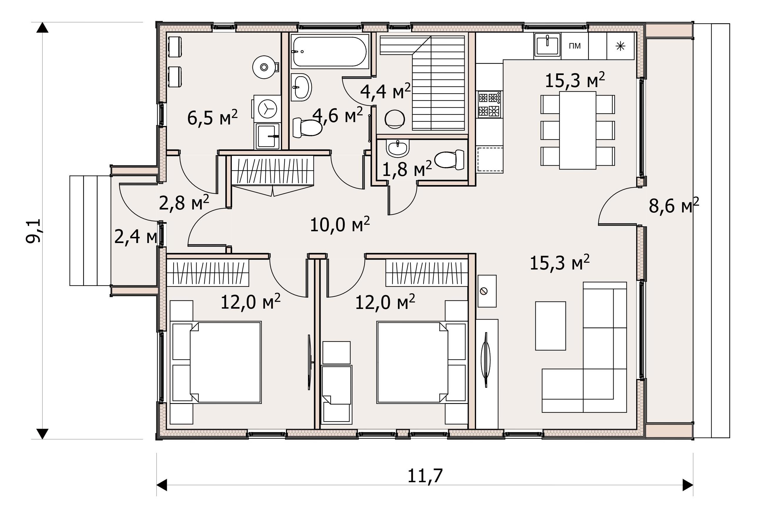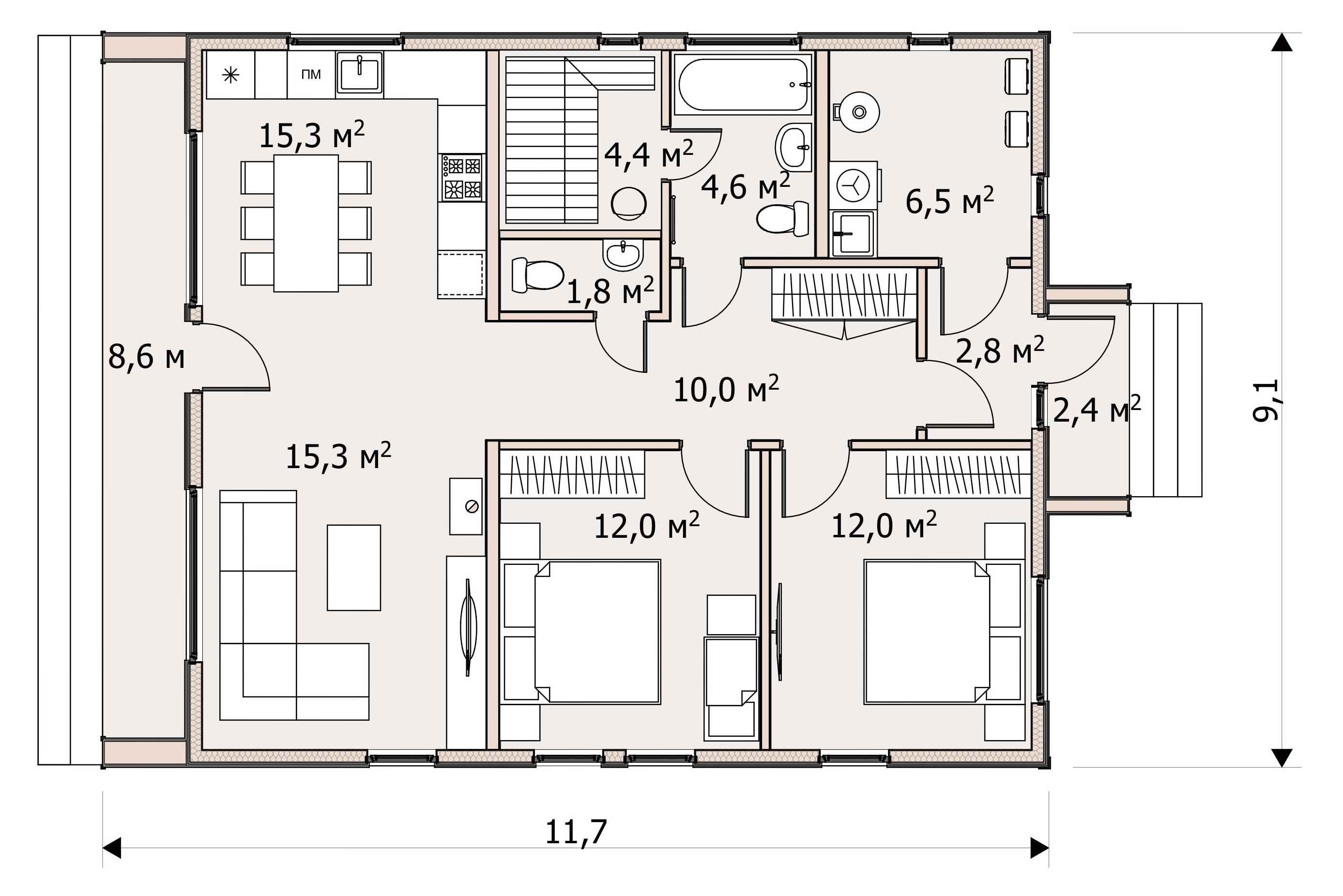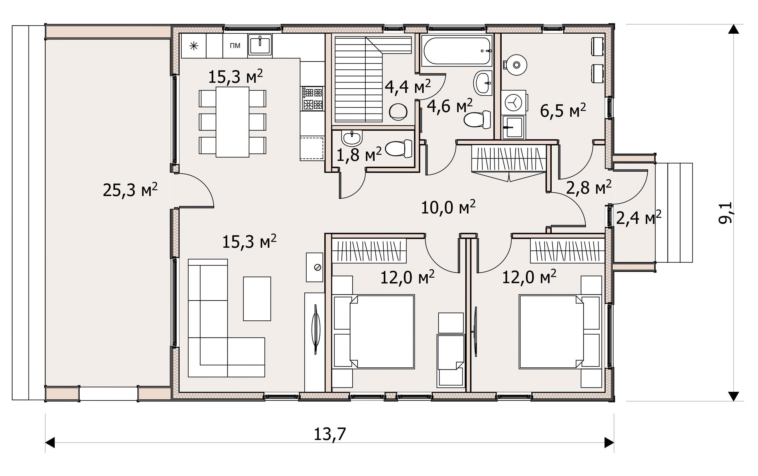 | Опция: Терраса +17 м2 |