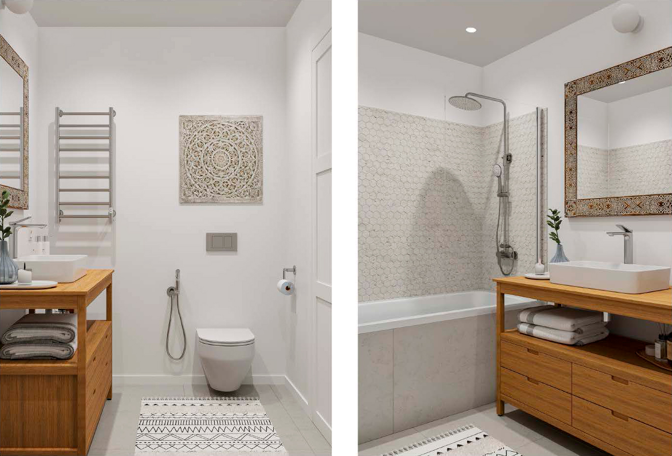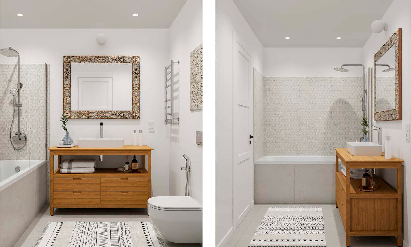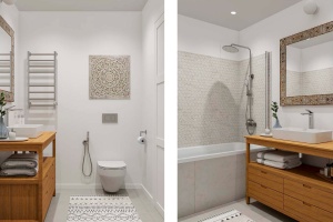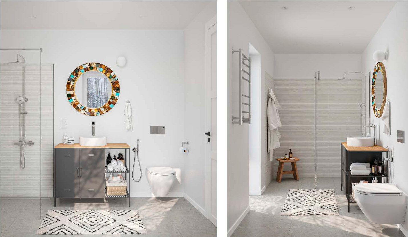 Сантехнические приборы устанавливаются в ванной комнате и туалете «под ключ» в случае заказа данной опции на этапе чистовой отделки. Это могут быть устройства любых типов, как традиционные напольные (приставные), так и настенные (рамные, каркасные) инсталляции. Сантехоборудование подключается к системам водоснабжения и канализации и готово к полноценной эксплуатации