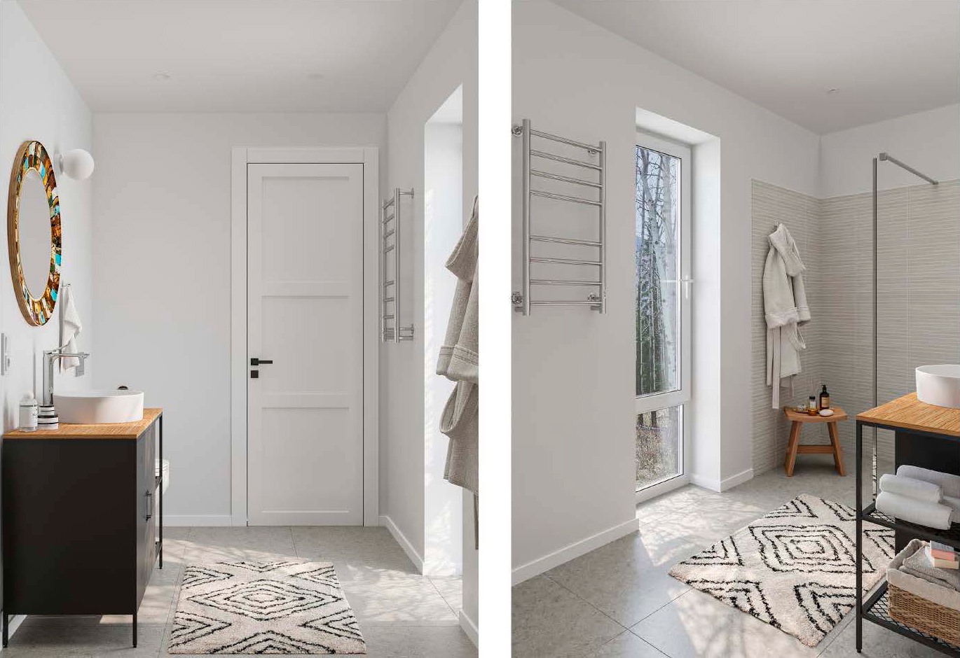 В качестве отопительных приборов используются стальные панельные радиаторы. Это самые популярные батареи в мире, обладающие хорошей теплопроводностью, высокой мощностью теплового излучения, небольшой массой, прочностью и долговечностью, эстетичным внешним видом. Важным достоинством является низкая чувствительность к качеству теплоносителя.