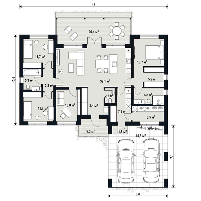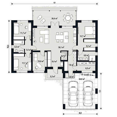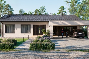 Проект может быть построен из керамических блоков Porotherm и по каркасно-панельной технологии prefab