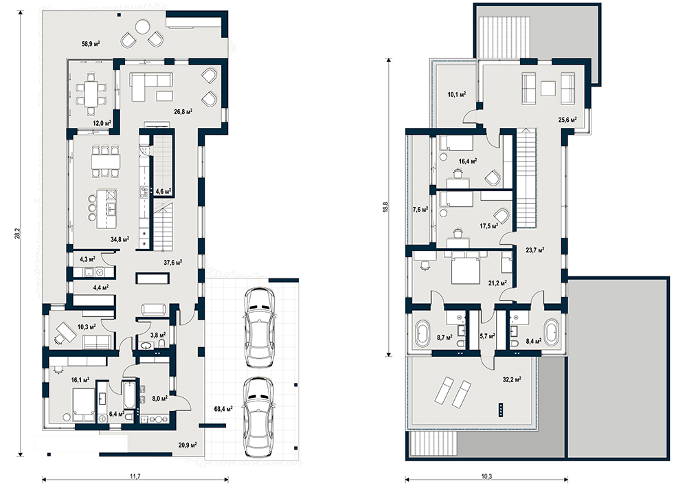 Может быть построен из керамических блоков Porotherm и по каркасно-панельной технологии prefab