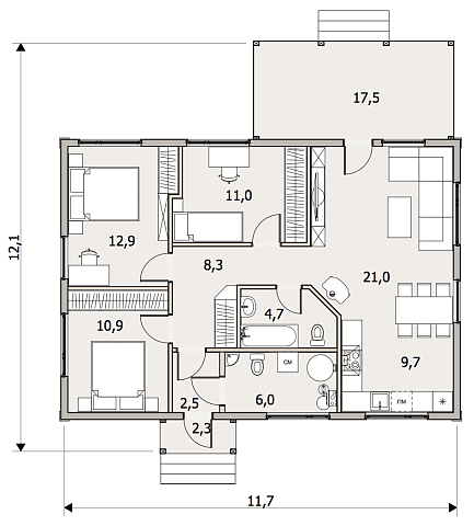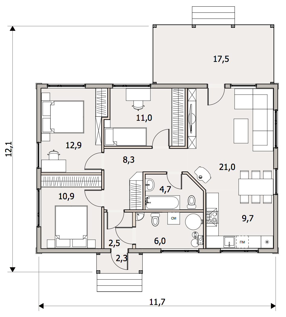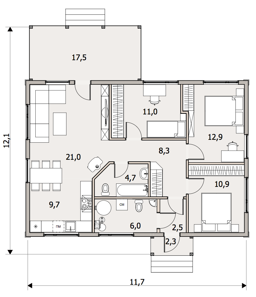 | Опция: Терраса 17,5 м2 |