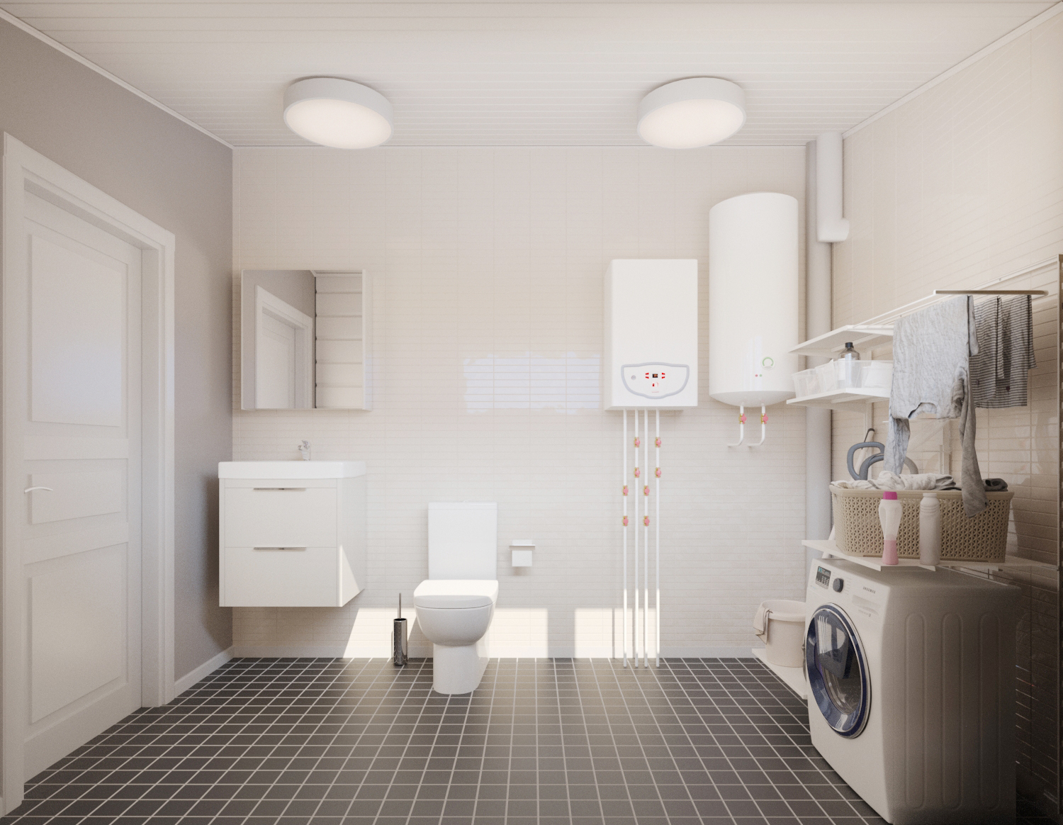 Базовое предложение предполагает установку в доме отопительного электрокотла мощностью 9 кВт или 14 кВт в зависимости от проекта. Для приготовления горячей воды устанавливается электрический бойлер объемом 150 л. В дальнейшем систему можно оснастить газовым котлом и бойлером косвенного нагрева, оставив электрокотёл в качестве резервного.
