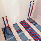 Разводка трубопроводов отопительной системы выполняется внутри перекрытий пола и потолка. Трубы укладываются цельным куском, без стыков. Соединения есть только в коллекторном шкафу и в точке присоединения к радиатору. Подобное решение исключает риск скрытых протечек. Мы используем трубы из сшитого полиэтилена – это премиум материал с высоким классом надёжности.
