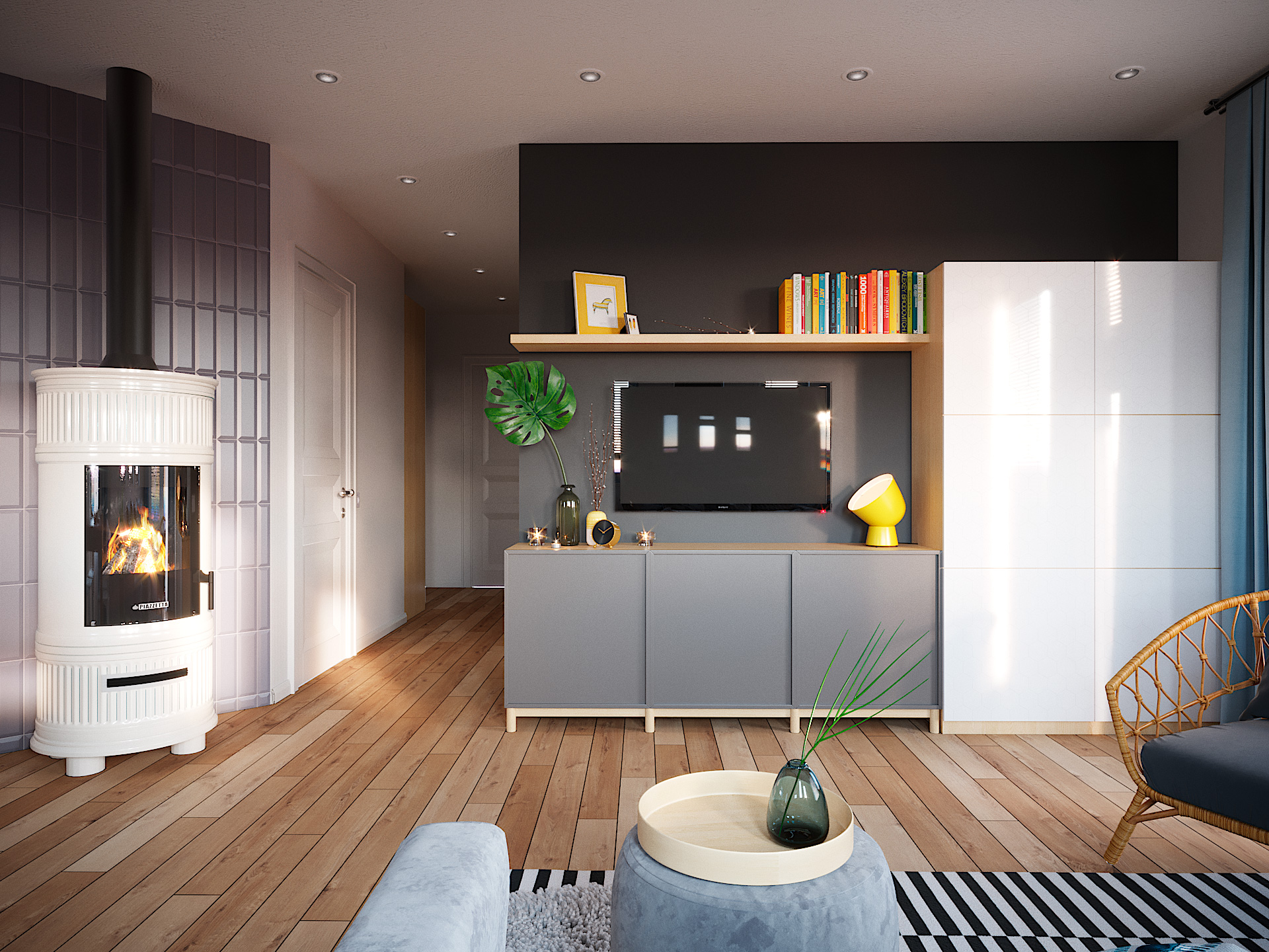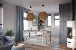 В качестве отопительных приборов используются стальные панельные радиаторы. Это самые популярные батареи в мире, обладающие хорошей теплопроводностью, высокой мощностью теплового излучения, небольшой массой, прочностью и долговечностью, эстетичным внешним видом. Важным достоинством является низкая чувствительность к качеству теплоносителя.