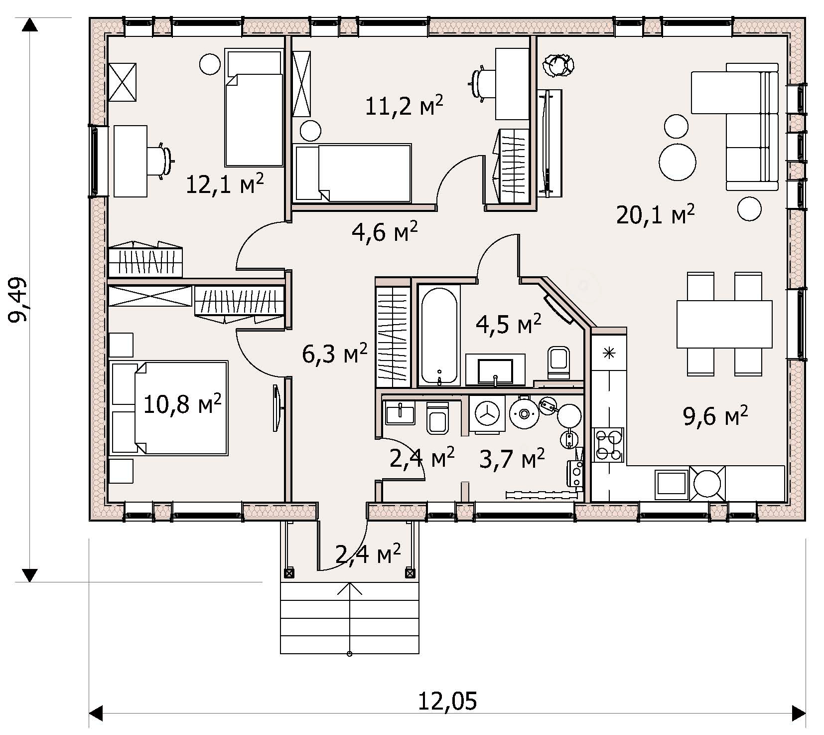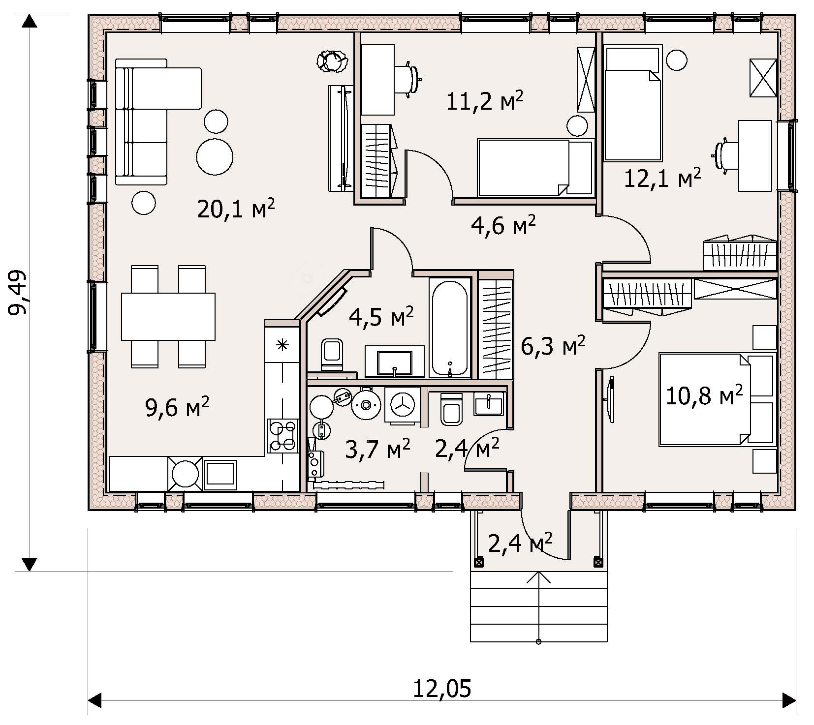 | Опция: Терраса 18,0 м2 |