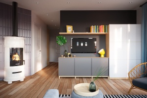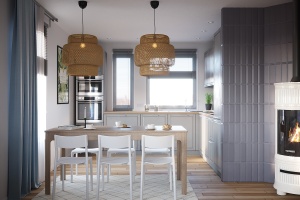 Базовое предложение предполагает установку в доме отопительного электрокотла мощностью 9 кВт или 14 кВт в зависимости от проекта. Для приготовления горячей воды устанавливается электрический бойлер объемом 150 л. В дальнейшем систему можно оснастить газовым котлом и бойлером косвенного нагрева, оставив электрокотёл в качестве резервного.