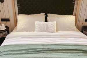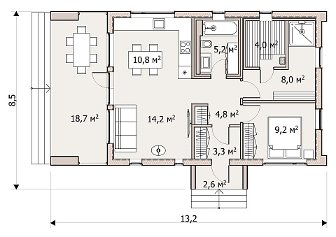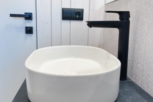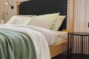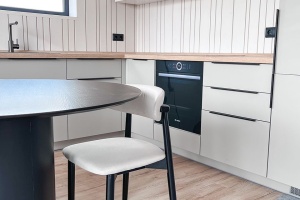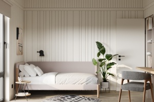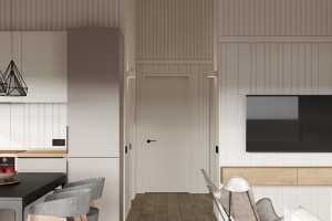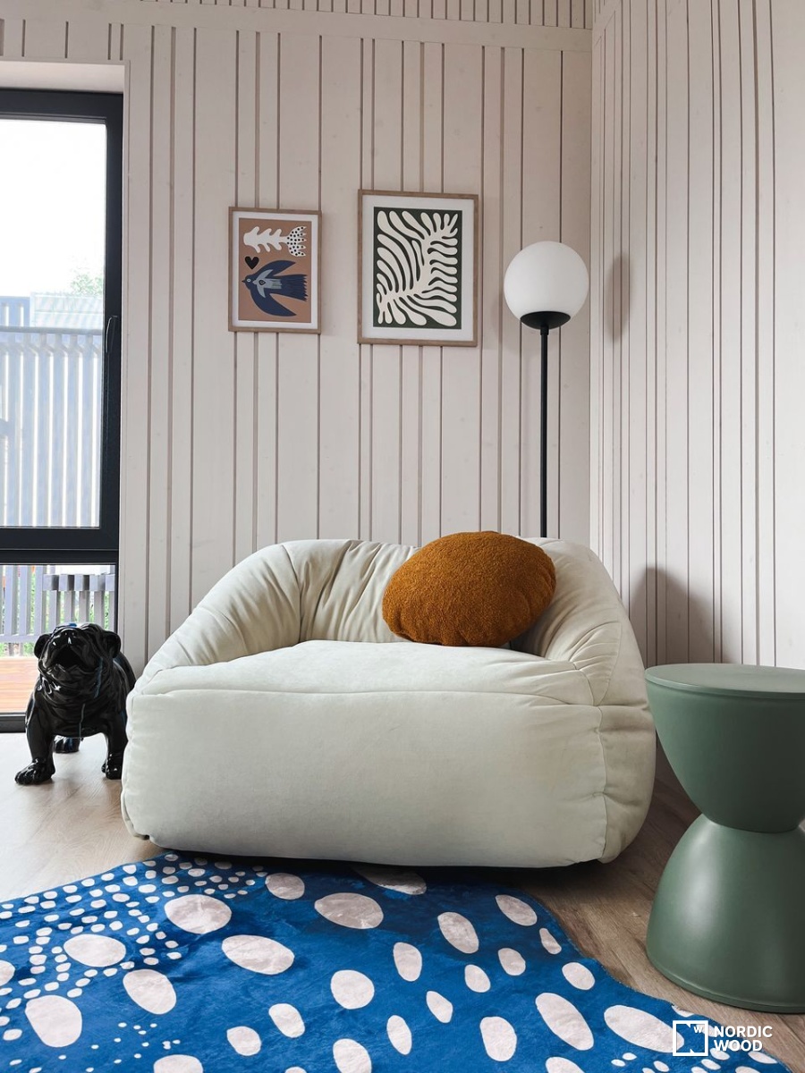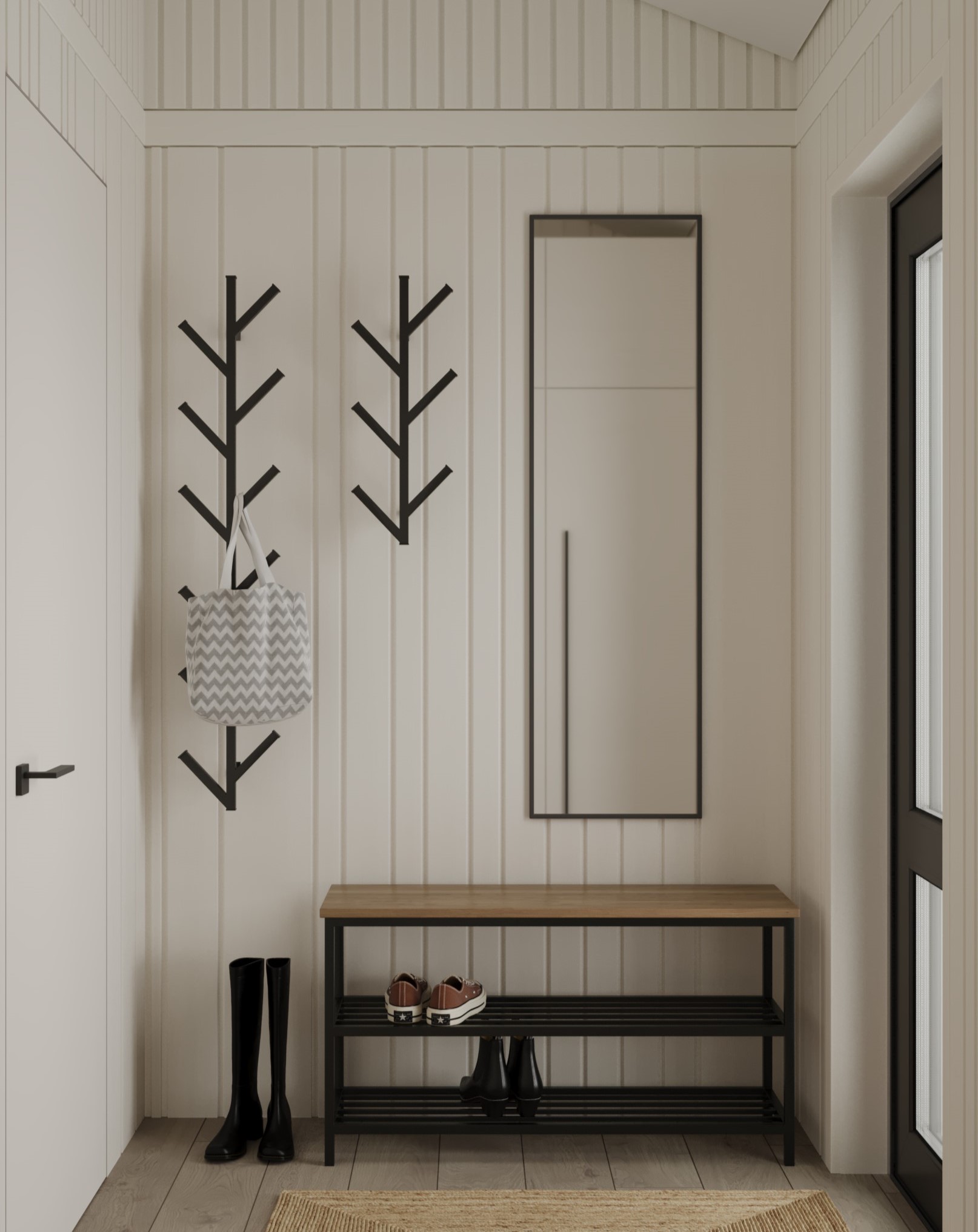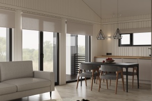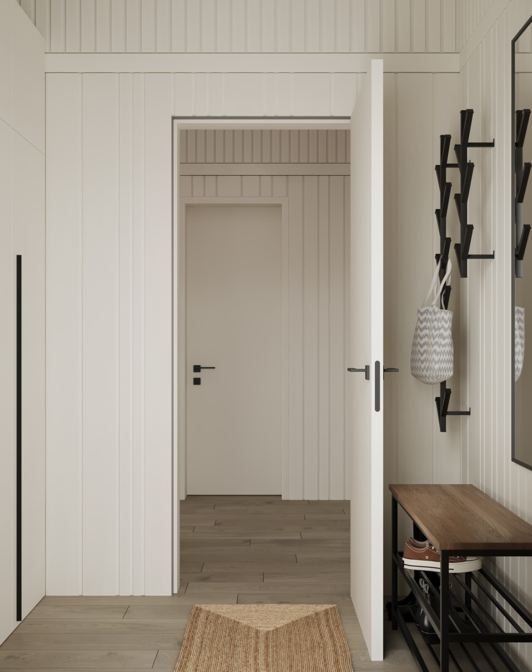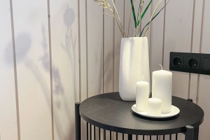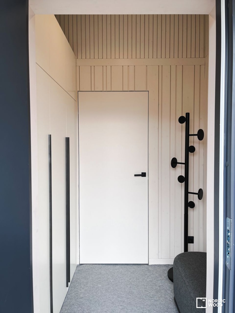 - Внутренние стены отделаны крашеной фрезерованной доской